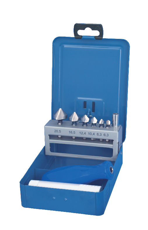 Produktinformationen "Senk-Bits-Sätze 90° mit Bits-Schaft 1/4" in Metall-Kassette 6,3 - 20,5 mm"